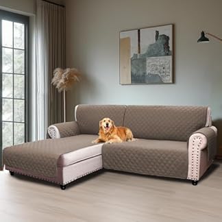 BellaHills Sofabezug L Form 2 Sitzer (205cm), Couch Überzug L Form Mit Armlehne, Ecksofa Bezug Links Für Hund Katze, Sofa Überzug Eckcouch rutschfest Sofa Auflage für Wohnzimmer, Taupe