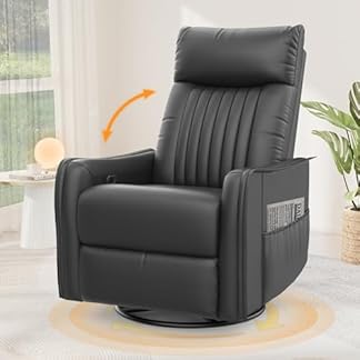 Srfzluxy Fernsehsessel mit Liegefunktion, Relaxsessel 360°Drehbarer TV Sessel Wohnzimmer, Schaukelstuhl mit Gepolsterte Kopfstütze, 2 Seitentaschen