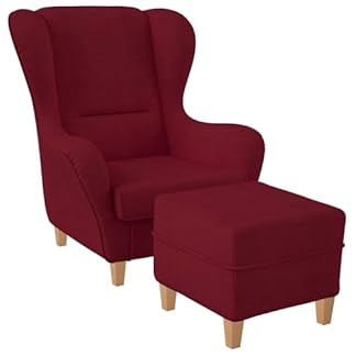 - Supellex Sofia Ohrensessel mit Hocker, Sessel Wohnzimmer, Stil Relaxsessel, Hohe Rückenlehne, moderner Fernsehsessel, Loungesessel, Polstersessel, Design Vienna Rubin-Rot€699,00Produkt kaufen