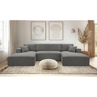 - AXLIVING Graues Sofa mit Schlaffunktion – Catea U Cord Wohnlandschaft 364 cm€989,49Produkt kaufen