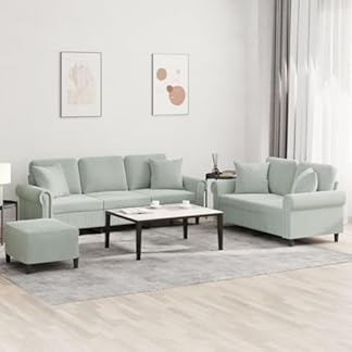 YUOTYRKTEJRSG 3-TLG. Sofagarnitur mit Kissen Hellgrau Samt. weiches Velours Sofa Set mit Hocker. Bequeme Wohnzimmer Couchgarnitur für Fernsehen und Entspannen. modernes Sofa Set Grau