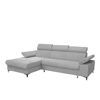 Ares Meble Ecksofa mit Schlaffunktion LAVIDA – Modernes L-Sofa 3-sitzer – Wohnzimmer Sofa – Kleine Eckcouch mit Bettkasten – Solider Rahmen aus Holz – Samt – Grau