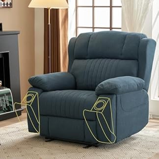PALLOME Elektrischer Relaxsessel mit Massage- und Heizfunktion, Sessel für große Menschen mit 2 Getränkehaltern, USB-Anschluss und 2 Seitentaschen (Blau)