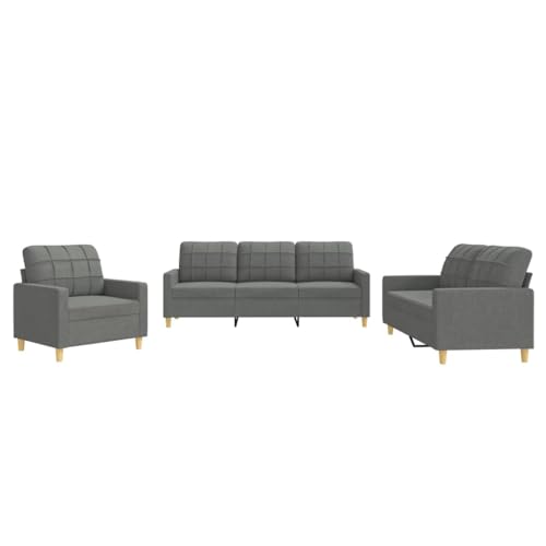 3-TLG. Sofagarnitur mit Kissen Dunkelgrau Stoff,Schicke und Bequeme Sofa Garnitur 3er, 2er & Sessel in Grau für Ihr Wohnzimmer Wohnzimmer, Sofas