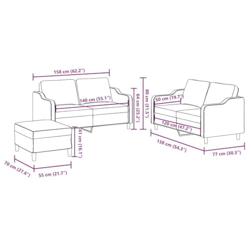3-tlg. Sofagarnitur mit Kissen Schwarz Stoff. 2-Sitzer Sofa Set mit Hocker. Wohnzimmer Couchgarnitur mit bequemer Polsterung. langlebigem Stoffbezug und stabiler für gemütliches Wohnambiente