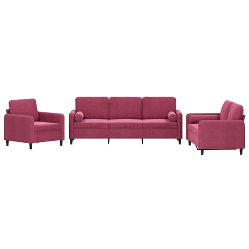 3-TLG. Sofagarnitur mit Kissen Weinrot Samt,Luxuriöses Samtsofa: Gemütliche Couchgarnitur für Wohnzimmer und Schlafzimmer Wohnzimmer, Sofas