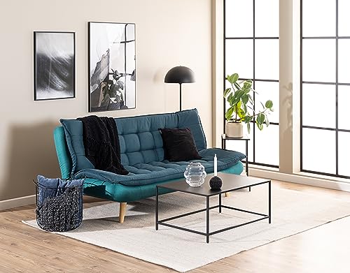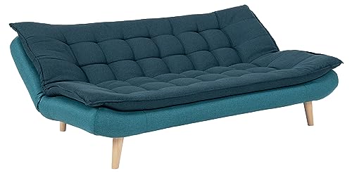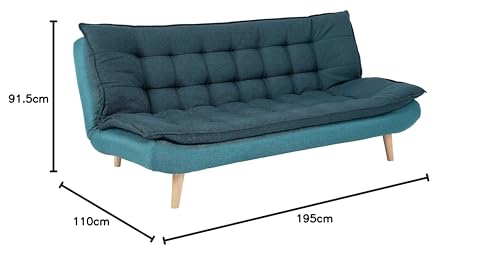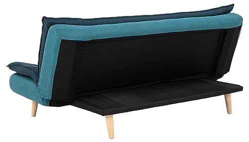 AC Design Furniture Henriette Bettcouch mit Schlaffunktion, Modernes 3-Sitzer Sofa mit Verstellbarer Rückenlehne, Gepolstertes Gästebett in Blau mit Holzbeinen, B: 194 x H: 91 x T: 112 cm