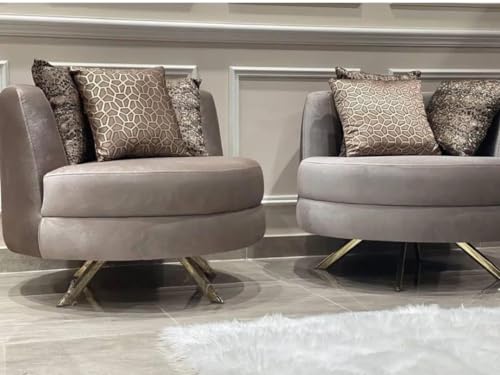 Set-Inhalt: 2x 3-Sitzer-Sofa, 1x Sessel Bezug: Hochwertiger Samtstoff Farben: Erhältlich in Grau und Schwarz Materialien: Rahmen aus massiver Buche Goldene Metallfüße