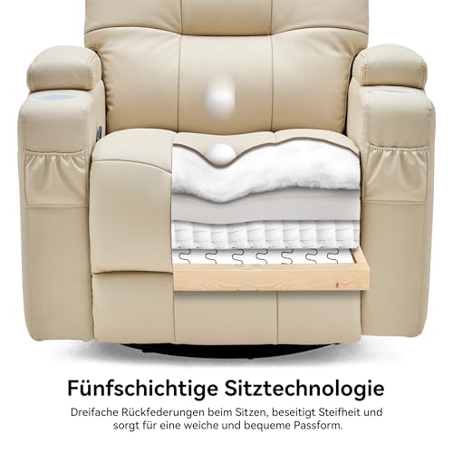 Sitzkissen mit vier Schichten: Stillsessel babyzimmer Kontaktfläche des Kissens besteht aus Leder der ersten Schicht, schaukelsessel wohnzimmer Komfortschicht aus Seidenwatte und hochdichtem, umweltfreundlichem Schaumstoff, stressless sessel Rückprall-Schicht aus hochdichtem, feuerfestem Federrahmen und tv sessel mit liegefunktion Stützschicht aus 0,82 % Kohlenstoffstahlfedern.