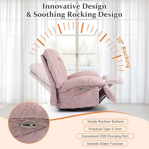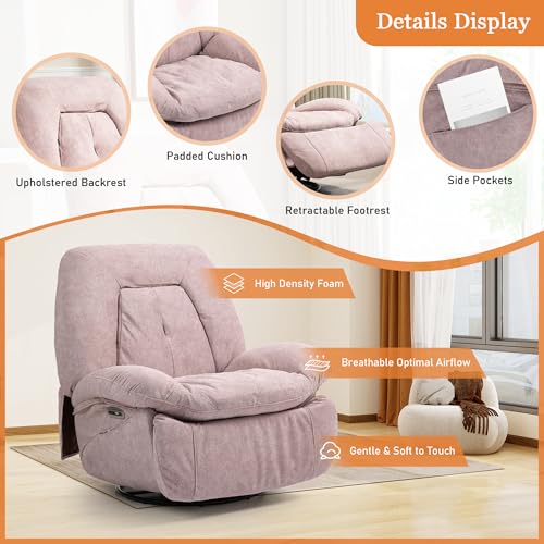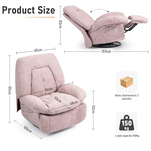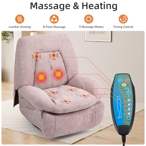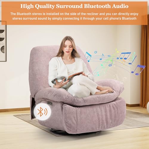 ALEAVIC Relaxsessel Elektrisch Massagesessel, Sprachsteuerung Heizung Vibration Massage Sessel Drehbar, mit TYP C & USB-Anschlüsse,1 Seitentaschen, Liegen TV Sessel Wohnzimmer (Rosa)