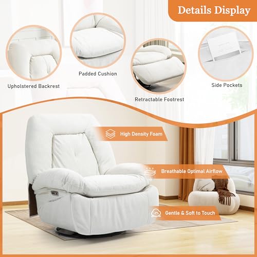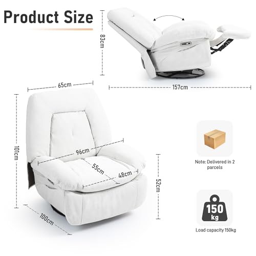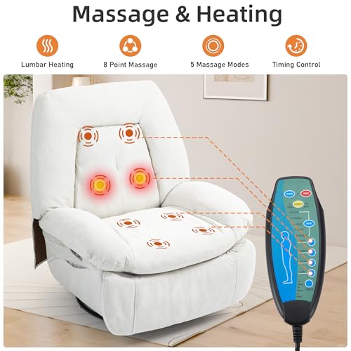 ALEAVIC Relaxsessel Elektrisch Massagesessel, Sprachsteuerung Heizung Vibration Massage Sessel Drehbar, mit TYP C & USB-Anschlüsse,1 Seitentaschen, Liegen TV Sessel Wohnzimmer (Weiß)