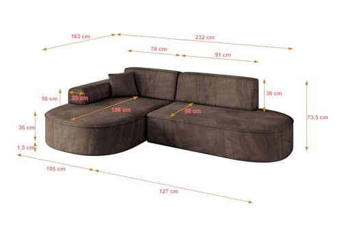 Vielseitige Sofa: Die Ecksofa hat Komfort und Stil. Praktische Bequeme Funktionsecke für Ihr Zuhause. Raumsparende Couch L-Form: Dank der L-Form passt die Eckcouch in jede Ecke.