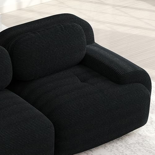 Arhatreya 3 Sitzer Modular Sofa Gästesofa Modern Couch, 3er Sitzsofa mit Armlehnen und Kissen, Polstersofa für Wohnzimmer, Schlafzimmer, Buros, Heimkino, Cordstoff, Schwarz