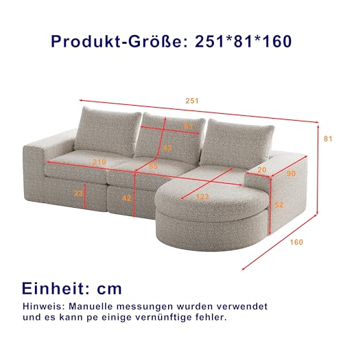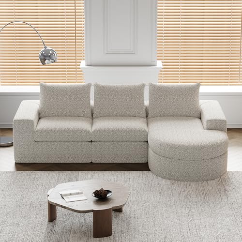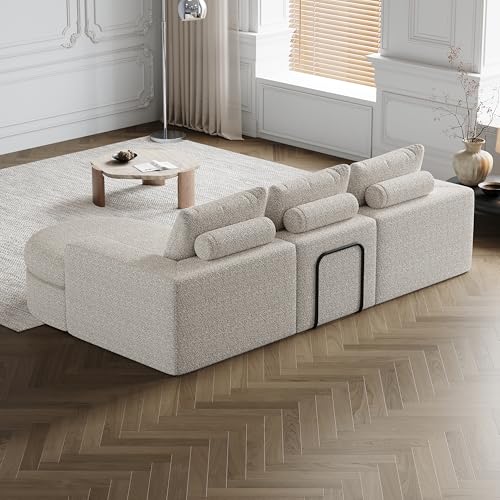 Arhatreya 3 Sitzer Sofa Gästesofa Modern Couch, 3er Sitzsofa mit Liegestuhl, Modulares Kombinationssofa, Polstersofa für Wohnzimmer, Wohnung, Chenille, Keine Montage, Beige