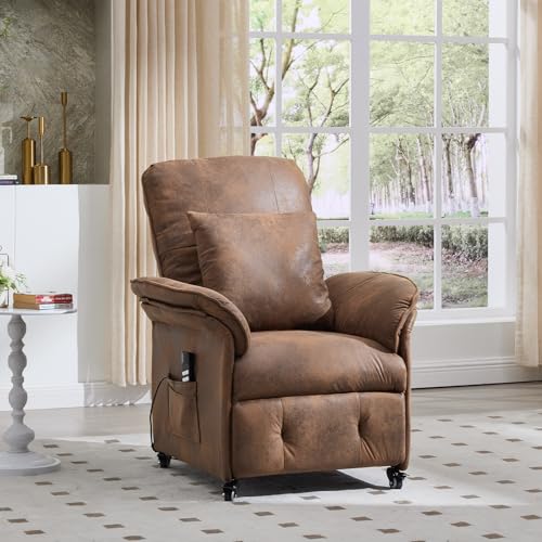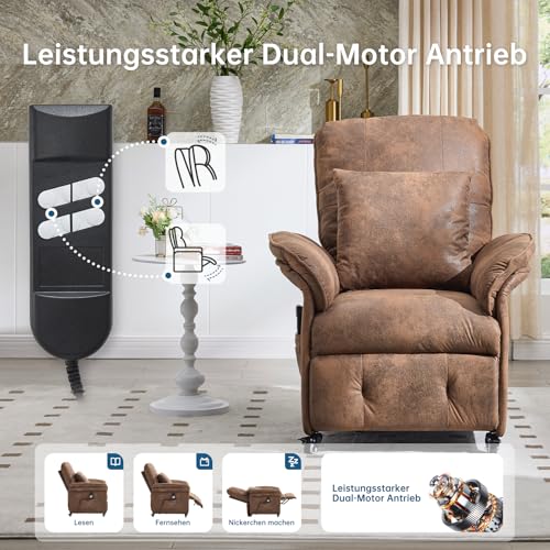 Asukale 2 Motoren Elektrischer Relaxsessel, Fernsehsessel mit Liegefunktion, TV Sessel Wohnzimmer mit Rollen, Verstellbarer Rückenlehne & Fußstütze, 2 Seitentaschen, Recliner Chair, Braun Flockleder