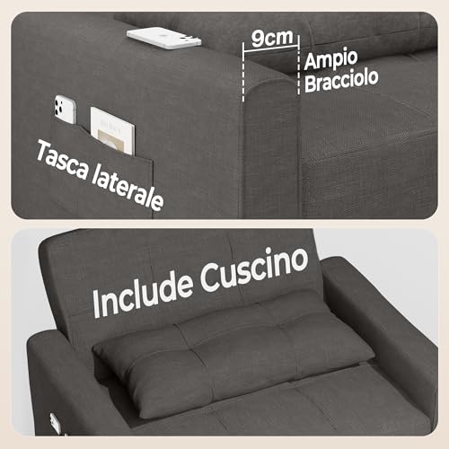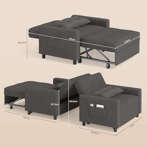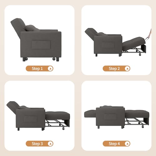 【Multifunktional】Der Schlafsessel kann je nach Platzbedarf oder Vorlieben in ein Sofa, einen Loungesessel und ein Einzelbett verwandelt werden. Taschen auf beiden Seiten sorgen zudem statt dessen praktischen Stauraum. Modisches Aussehen, angebracht statt dessen Wohnzimmer, Schlafzimmer, Büro usw.