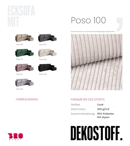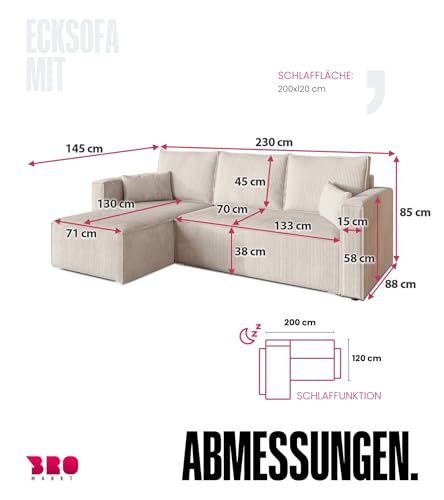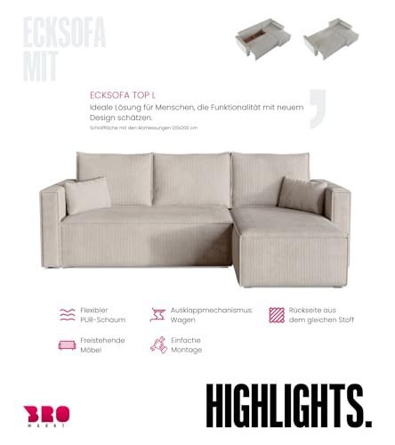 Schlaffunktion – Der Ecksofa lässt sich schnell in ein komfortables Bett verwandeln, ideal für persönliche Entspannung oder Gäste. Eine perfekte Ablösung für diejenigen, die gerne Gäste empfangen, nur keinen zusätzlichen Gästezimmer haben.