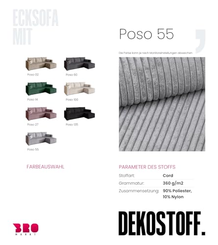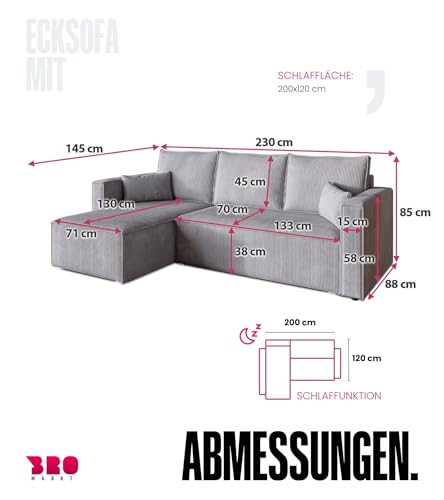 Schlaffunktion – Der Ecksofa lässt sich schnell in ein komfortables Bett verwandeln, ideal für persönliche Entspannung oder Gäste. Eine perfekte Abtrennung für diejenigen, die gerne Gäste empfangen, ungeachtet keinen zusätzlichen Gästezimmer haben.
