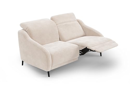 Cavadore 3er-Sofa Blue, 3-Sitzer Couch im modernen Design mit motorischer TV-Funktion inkl. klapptisch, USB-Anschluss, Kopfteilverstellung, mattschwarzen Metallfüßen, 192 x 93 x 104, Mikrofaser, Beige
