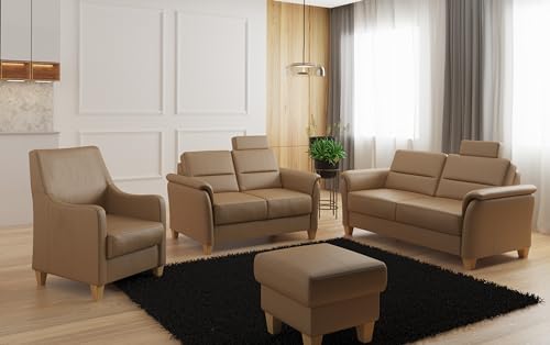 Bezug: Hochwertiges Leder „Punch“ (100% Echtleder) / Farbe: „Cappuccino“ (entspricht Beige) / Rücken echt bezogen (frei im Raum stellbar)