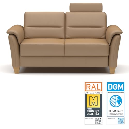 CAVADORE Leder 3er-Sofa Palera / Landhaus-Couch mit Federkern, Kopfstütze + massiven Holzfüßen / 179 x 89 x 89 / Leder Beige