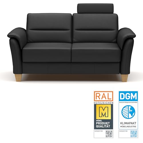 CAVADORE Leder 3er-Sofa Palera / Landhaus-Couch mit Federkern, Kopfstütze + massiven Holzfüßen / 179 x 89 x 89 / Leder Schwarz