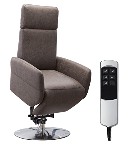 Lieferumfang: Cavadore 2344 – TV-Sessel Cobra in Ergonomiegröße L / Inkl. 2 E-Motoren, Aufstehhilfe u. a. Fernbedienung zur automatischen Verstellung der Rückenlehne, Fußstütze u. a. Aufstehfunktion / inkl. verstellbarer Kopfstütze / Leistungsfähig bis 130 kg / Fuß: Drehteller in Edelstahl