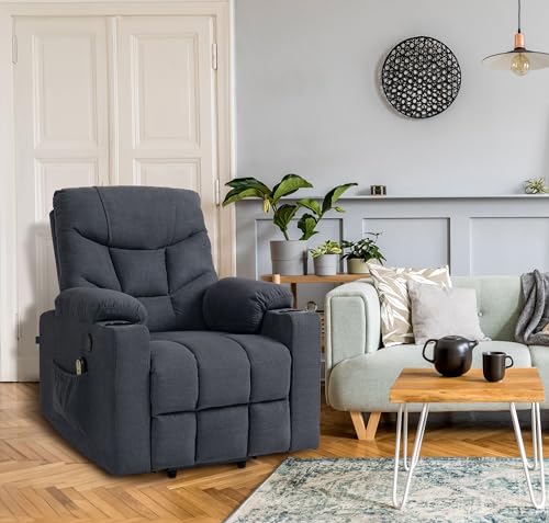 CLP Sessel Andover I Relaxsessel Elektrisch Verstellbar Mit Aufstehhilfe I Fernsehsessel Mit Liegefunktion, USB Ports Und Getränkehalter, Farbe:dunkelgrau, Material:Stoff