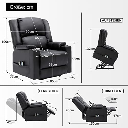 COMHOMA elektrischer Aufstehsessel, Relaxsessel Fernsehsessel Massagesessel mit Liegefunktion Sessel mit Aufstehhilfe Powerlift-Liegestuhl für ältere Menschen Schwarz