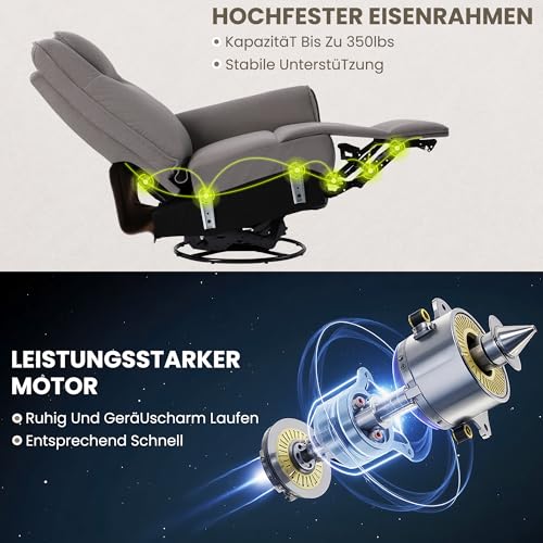 Consofa Fernsehsessel Elektrisch Verstellbar, Relaxsessel Massagesessel Fernsehsessel mit Liegefunktion, 270° Drehbar & 30° Wippbar TV Sessel Wohnzimmer mit USB/Typ-C (Technische Stoffe, Grau)