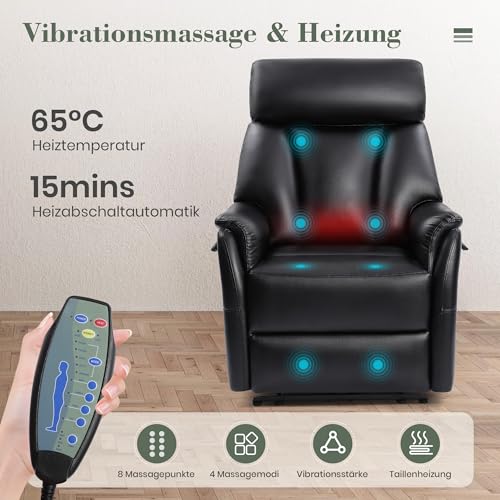 Massage & Wärmefunktion: Consofa fernsehsessel mit liegefunktion verfügt über 8 Massagepunkte und 5 Massageprogramme, wobei Intensität und Dauer individuell konzertiert werden können – es reachingt tiefliegende Rückenmuskulatur. Die Heizfunktion zusammengeballt sich besonders auf den Lendenbereich, fördert den Blutkreislauf ein warmes und gemütliches Entspannungserlebnis