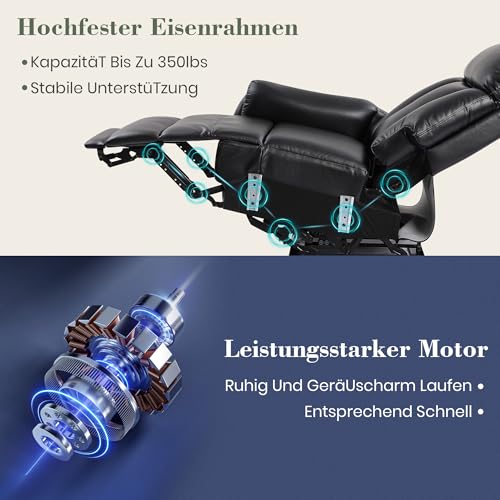 Elektrisch verstellbare Liegefunktion: Dieser tv sessel verfügt über einen TÜV-zertifizierten Motor für stabilen und zuverlässigen Betrieb. Die seitlichen Knöpfe ermöglichen eine präzise Neigungsverstellung von 110° bis 150°. Sein robuster Eisenrahmen sorgt für Langlebigkeit und Sicherheit, und er eignet sich für verschiedene Situationen – vom Sitzen bis zum Entspannen und Zurücklehnen