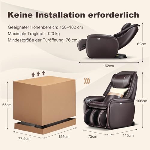 【Installationsfrei & Einfache Steuerung】Dieser Massageliege ist abstandslos vormontiert. Und das Paket umfasst ein 45 x 45cm Wurfkissen. Die Transportrollen helfen Ihnen, den Massagestuhl an den gewünschten Ort zu bewegen, sei es im Büro oder zu Hause. Die Steuerung ist einfach mit der mitgelieferten Fernbedienung und den ausführlichen Anweisungen.