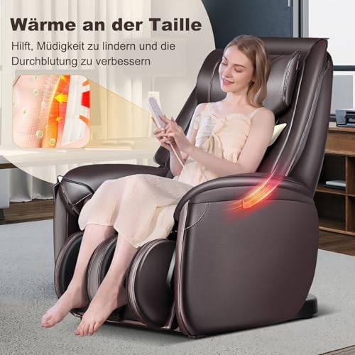COSTWAY Elektrischer Massagesessel, Zero Gravity SL Spur Massagestuhl, Relaxsessel Liegestuhl mit Ganzkörpermassage, Rückenheizung, Wadenairbag-Massage, Fernbedienung, Rädern & Kissen (Braun)