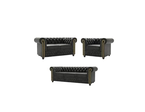 VINTAGE LOOK: Couch und Sessel fügen sich in vielerlei Einrichtungsstile nahtlos ein – perfekt aka sondern Empfangs- oder Warte-Bereiche – mit Echtholz-Füßen – Bodenfreiheit ca. 10cm – Sitzhöhe 45cm