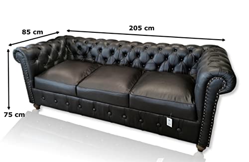MAßE UND FARBE: ca. Breite 205cm x Schlund 85cm x Höhe 75cm – Gewicht: 60kg – Büffel Echt Leder schwarz