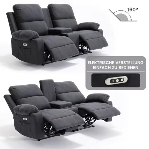 Dolamaní 2-Sitzer Elektrisch Relaxsessel Relaxsofa Fernsehsessel mit Liegefunktion 100°-160° für Wohnzimmer, Schlafzimmer (B)