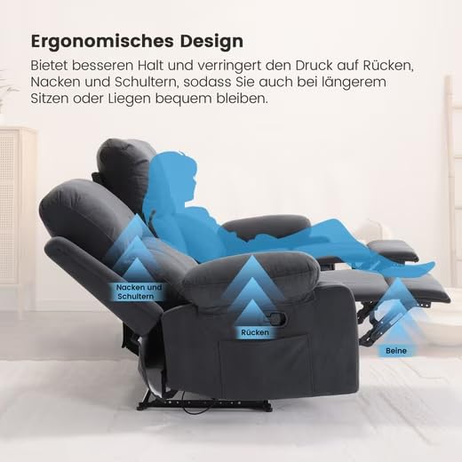 Ergonomisches Design: Rückenlehne, Sitzfläche und Fußstütze sind ergonomisch geformt und bieten optimale Unterstützung und Entspannung, egal ob Sie abbrummen oder liegen.
