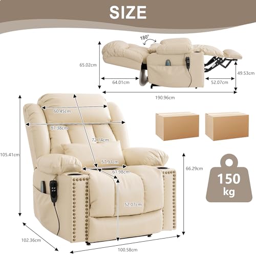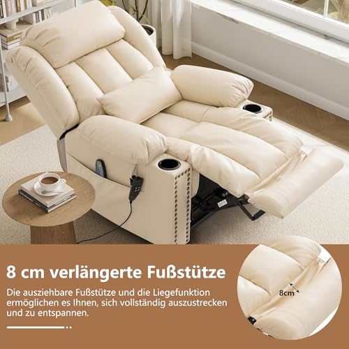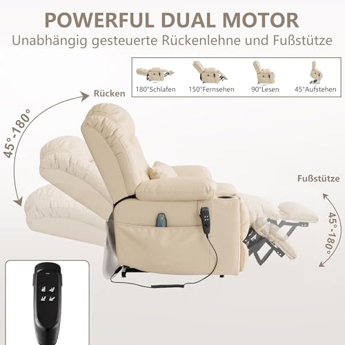 DUANDUAN 2 Motoren Elektrischer Relaxsessel mit 180° Liegefunktion, Sessel mit Schlaffunktion, Massagesessel mit Aufstehhilfe,Vibration und Heizung (Beige) (Beige verlängert)