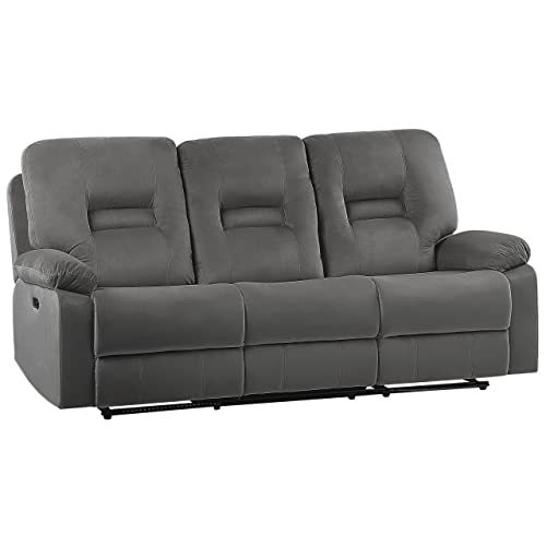 Gemütliches, elektrisch verstellbares Dreisitzer Sofa mit USB-Anschluss und LED-Licht. Dieses elektrisch verstellbare Samtsofa wird Ihnen jederzeit einen unschlagbaren Komfort bieten. Die beiden äußeren Sitze des Relaxsofas verfügen über regulierbare Rückenlehnen, die sich Ihrem Körper einsetzen, und Fußstützen, die die Couch in einen bequemen Entspannungsort verwandeln können. Die breiten Armlehnen, adipös gepolsterten Sitzflächen und hohen Rückenlehnen mit einem angenehmen Samtbezug garantieren einen hohen Sitzkomfort. Alldem ungeachtet sorgt das integrierte LED-Licht für eine angenehme Atmosphäre während jedes Filmabends und der praktische USB-Anschluss ermöglicht es Ihnen, Ihr Handy problemlos aufzuladen.