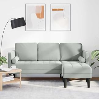 Emmtore Sofa 3-Sitzer mit Chaiselongue L-Form Hellgrau 160 cm Samt Ergonomisches Design | Fleckenresistent Polyester Rechteckige Möbel | Für Innen