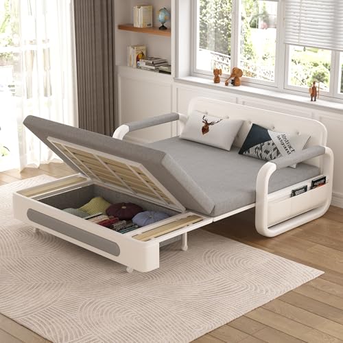 EOBfurniture Ausziehbares Schlafsofa – Sofa mit Schlaffunktion und Stauraum, Schlafcouch für kleine Räume und Wohnzimmer, Dunkelgrau und Weiß (128cm)