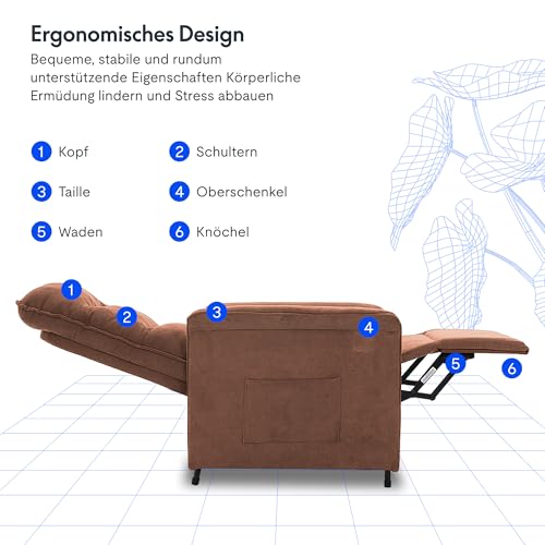 Ergonomisches Design: Die Rückenlehne, das Sitzkissen und die Fußstütze sind in drei Bereiche unterteilt, die der menschlichen Körperform folgen und sich perfekt an sie anpassen. Egal ob Sie sitzen oder liegen, Sie werden stets hervorragende Unterstützung erfahren. Es hilft Ihnen, Ermüdung zu Hause zu lindern und sich zu entspannen.