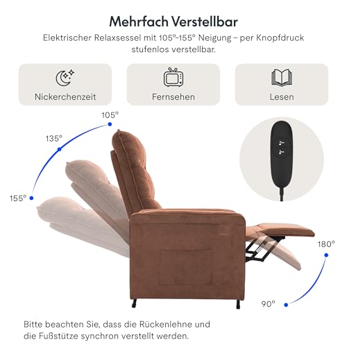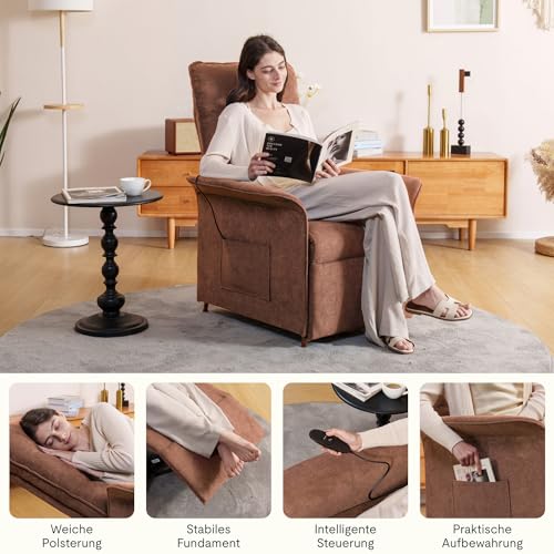 FLEXISPOT Elektrisch Relaxsessel mit verstellbare Rückenlehne- Verstellbarer TV Sessel, Fernsehsessel mit liegefunktion, 105° -155° verstellbare Rückenlehne – Relax Sessel,ergonomisch Khaki