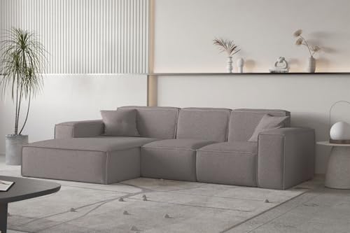 Fun Möbel Ecksofa Designersofa CELES Premium in Stoff Ascot Bukla (Taupe, Ottomane: Links)