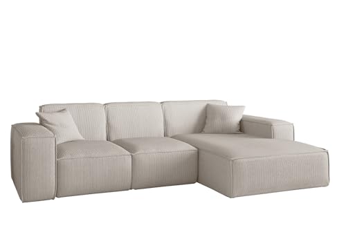 Fun Möbel Ecksofa Designersofa CELES Premium in Stoff Scala (Hellbeige, Ottomane: Rechts)