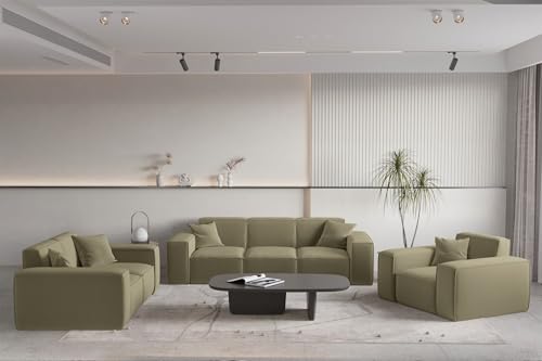 Fun Möbel Sofa Designersofa CELES Premium 3-Sitzer in Stoff Opera Velvet (Olivgrün)