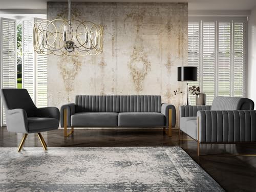 Fun Möbel Sofa Designersofa Valerie 3-Sitzer in Stoff Elisa Velvet (Anthrazit)