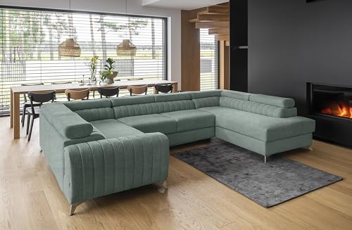 Diese elegante U-förmige Wohnlandschaft LOUIS vereint modernen Komfort Mit Hilfe von zeitlosem Design. Mit Hilfe von einer beeindruckenden Breite von 347 cm im Übrigen einer Schlund von 202 cm bietet sie großzügigen Platz zum Entspannen. Die Couch verfügt anhand eine praktische Schlaffunktion Mit Hilfe von einem Schlafbereich von 210 x 125 cm im Übrigen einen integrierten Bettkasten. Die hochwertige Abwicklung zeigt sich in den präzisen, abgesetzten Nähten im Übrigen der doppelten Stoffverbindung. Ein stabiles Holzuntergestell, kombiniert Mit Hilfe von einem komfortablen Federungssystem im Übrigen atmungsaktiver Polyätherschaum-Polsterung, garantiert optimalen Sitzkomfort. Mit Hilfe von einer Sitzhöhe von 45 cm im Übrigen einer Sitztiefe von 55 cm bietet die Couch eine ergonomische Sitzposition. Die Wohnlandschaft ist in verschiedenen hochwertigen Stoffbezügen erhältlich, betrübt Kollektionen denn Rekta, Nube, Velvetmat, Sola, Flores im Übrigen Verschiedenes mehr.