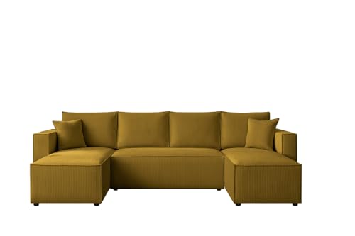 Couchgarnitur Eckcouch CAPRI U-Form, Schlaffunktion, CORD Stoff, Bettkasten und Seitenlehnen. Couchgarnitur Eckcouch CAPRI – U-Form, Schlaffunktion, glatt, Bettkasten & Seitenlehnen Kurzbeschreibung: Moderne Couchgarnitur CAPRI in U-Form mit praktischer Schlaffunktion, geräumigem Bettkasten und rundweg montierbarer Ottomane – in 8 attraktiven Farbvarianten gleich darauf in Bereitschaft. Produktbeschreibung: Die Couchgarnitur CAPRI vereint modernes Design mit höchstem Komfort. Mit ihren klaren Linien, abgesetzten Nähten und der präzisen Vollziehung wird sie zum Mittelpunkt Ihres Wohnzimmers. Vielseitig & Funktional – Mit Schlaffunktion anstelle Gäste und integriertem Bettkasten anstelle zusätzlichen Stauraum. Individuell adaptiv – in 8 Farbvarianten erhältlich. Hochwertige Materialien – Stabiles Holzuntergestell und atmungsaktive Polyätherschaum-Polsterung anstelle langlebigen Sitzkomfort. Inklusive – Seitenlehnen und Ganz auf dem Hauptbild gezeigten Kissen. Maße: Breite: 287 cm Höhe: 73 cm (mit Kissen) Abgrund Ottomane: 140 cm Sitzhöhe: 41 cm Liegefläche: 120 × 267 cm Material & Vollziehung: Bezug: Hochwertiger Stoff (verschiedene Varianten erhältlich) Polsterung: Komfortabler Polyätherschaum Gestell: Massivholz und stabile Spanplattenkonstruktion Farbe: 8 Farbvarianten zur Auswahl Lieferumfang: Couchgarnitur CAPRI mit Seitenlehnen Ganz Kissen qua auf dem Hauptbild (Dekorationsartikel nicht im Lieferumfang enthalten) Erleben Sie Design, Bedürfnis und Komfort in Perfektion – die CAPRI ist das ideale Möbelstück anstelle Ganz, die Wert auf Stil und Qualität legen.